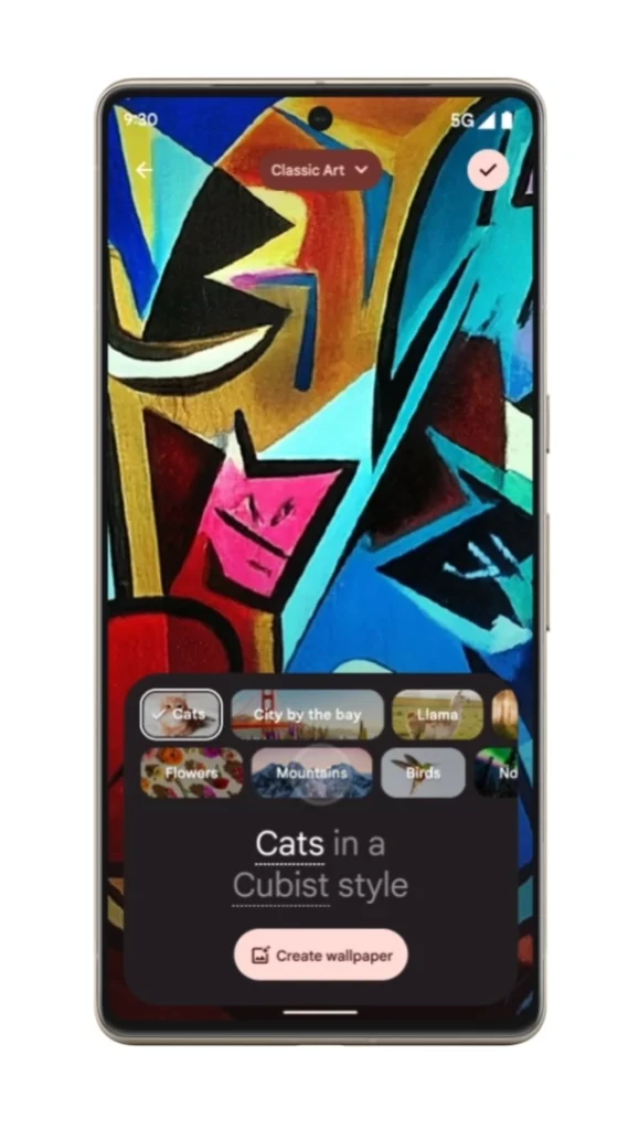 Artık Android cihazınızla birlikte gelen stok duvar kağıtlarını unutabilirsiniz. Bu duvar kağıtlarını beğenmediyseniz sorun değil Android 14 artık kullanıcının seçtiği temaya göre duvar kağıdının türüne karar vermesine izin veriyor. Seçilen temaya göre, Android 14 cihazınız artık hemen bir duvar kağıdı oluşturmak için yapay zekadan yararlanacak. Bu ayrıca, daha iyi istenen bir sonuç elde etmek için bilgi istemini ayarlamanıza olanak tanır.
