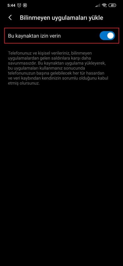 Ardından Bilinmeyen kaynaklardan gelen Uygulamaları Yükle seçeneğine girelim.