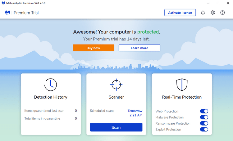 Bunun için Malwarebytes’i yenemezsiniz. Ücretsiz sürüm, sisteminizi antivirüsünüzün yakalayamayacağı kötü amaçlı yazılımlara karşı taramanıza olanak tanır. Güçlü bir karma güvenlik çözümü için Malwarebytes Premium’a yükseltme maliyetine değer.