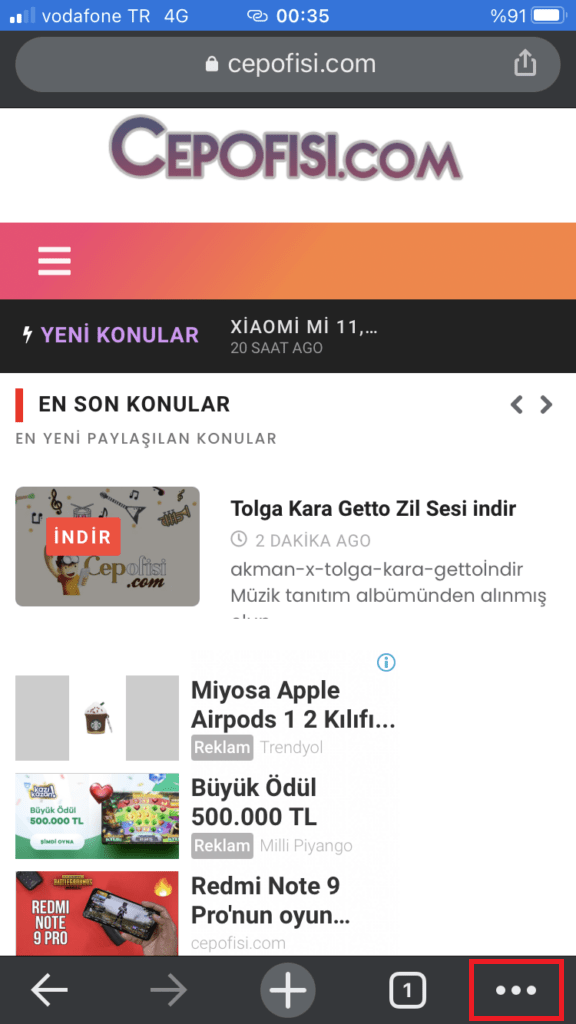 - Sağ alt köşedeki … yan yana üç noktayı tıklıyoruz.