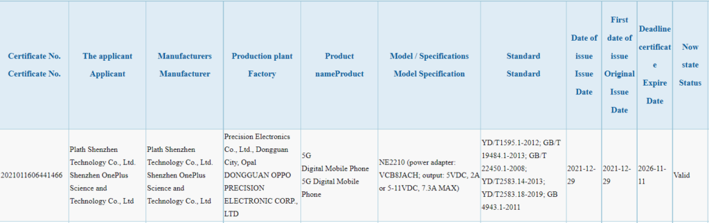 3C sertifikasına göre, NE2210 model numaralı OnePlus 10 Pro, 11V’de 7,3 amperlik çıkışı destekler. Kusursuz bir 80W hızlı şarj hızına dönüşür. Bu, önceki telefonlardan çok daha hızlı. Şimdiye kadar OnePlus cihazlarının desteklediği en hızlı şarj 65W. 80W hızlı şarj hızları ile OnePlus 10 Pro, en hızlı şarj olan OnePlus cihazı olacak.