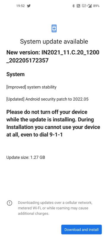 Şimdi değişikliklere giden C.20 güncellemesi, diğer iyileştirmelerle birlikte Mayıs 2022 Android güvenlik düzeltme ekini getiriyor. Aşağıdaki resmi değişiklik günlüğünü kontrol edebilirsiniz.