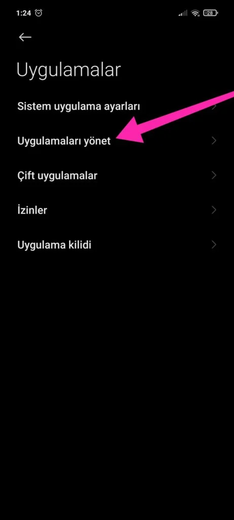 Uygulamaları yönet tıklayınız