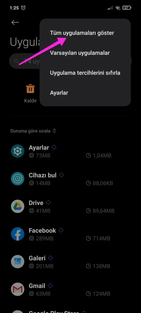 Tüm uygulamaları göster diyelim