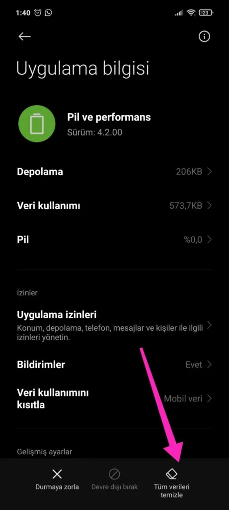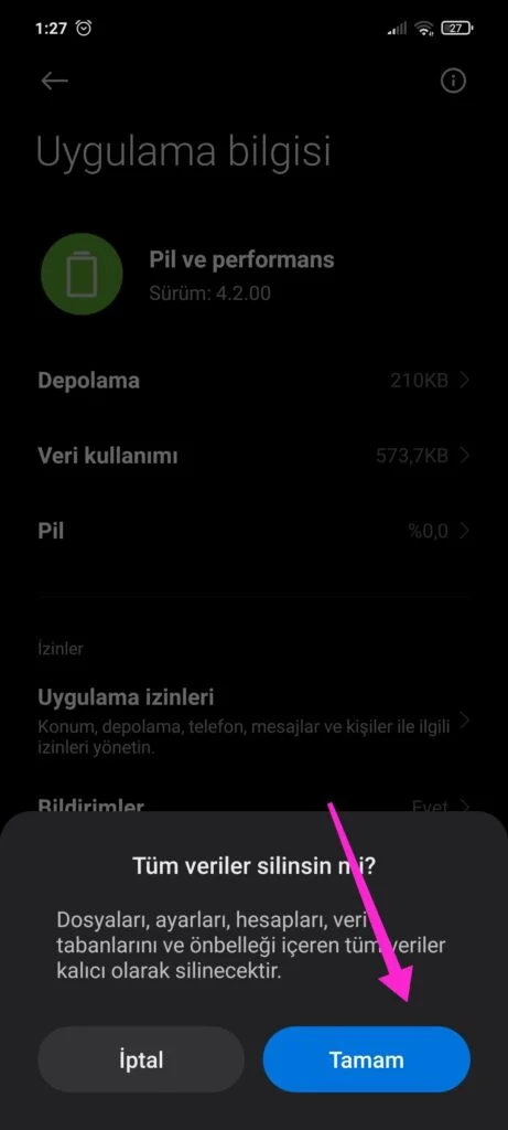 Pil ve performans ayarlarını sıfırlama ;