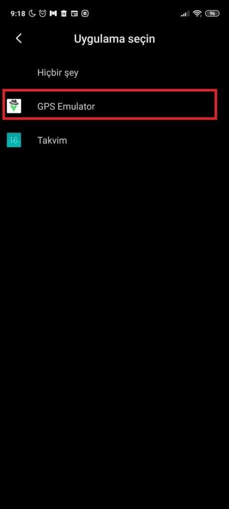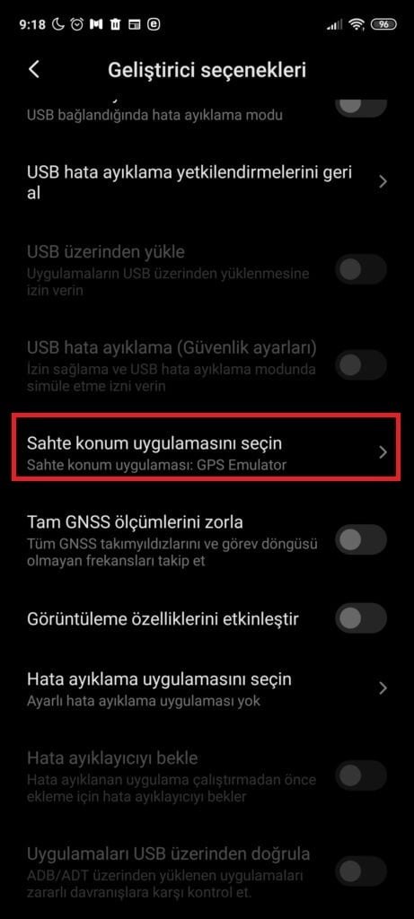 Geliştirici seçeneklerinden “Sahte konum uygulaması seçin” Tıklıyoruz. ardından GPS Emulator Uygulamasını seçiyoruz ve çıkıyoruz.