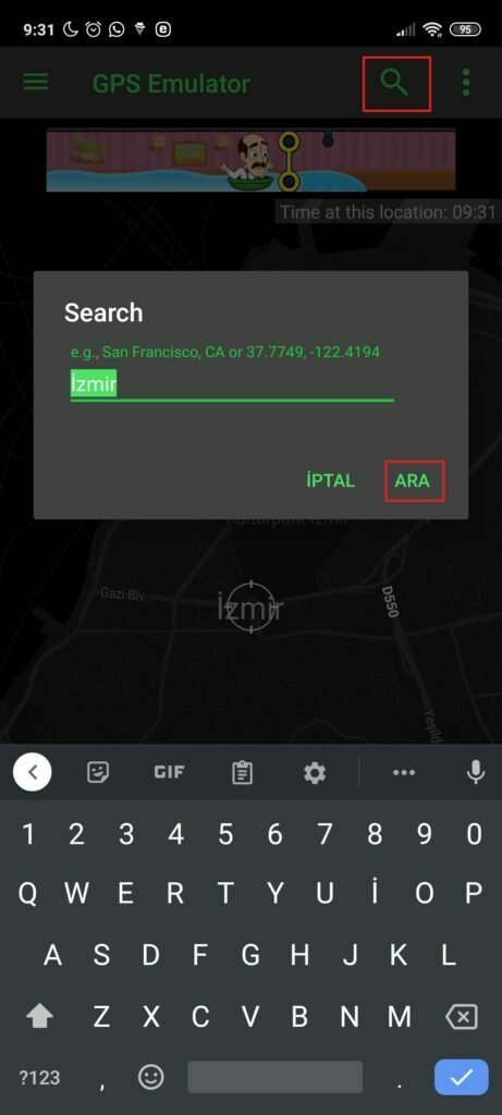 Yukarıdaki Alıntı resimlerinde de görmüş olduğunuz Arama İşaretini tıklıyoruz ve sahte canlı konumunuzu buluyoruz, Ben örneğin; Aydın şehrinden İzmir şehrinde olarak göstermek istiyorum kendimi ve arama kısmına İzmir yazıyorum, ikinci alıntı resim de ise konumumu buluyor. Bulduktan sonra aşağıdaki konum işaretleme simgesini tıklıyoruz. Hepsi bu kadar. Whatsapp uygulamasına girip canlı konum olarak paylaşabilirsiniz.